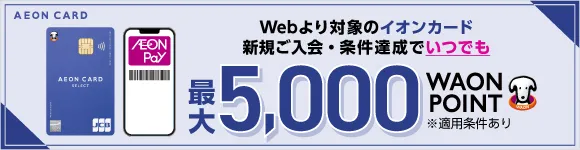 <PR>Webより対象のイオンカード新規ご入会・条件達成でいつでも最大5,000WAON POINT進呈